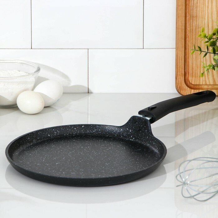 Сковорода блинная со съёмной ручкой Темный Мрамор, 240мм