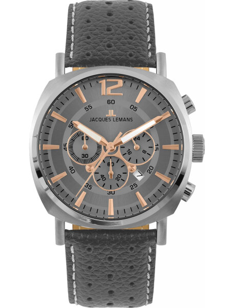 Наручные часы Jacques Lemans 1-1645L, мужские кварцевые спортивные часы Жак Леман с хронографом и датой на кожаном ремне