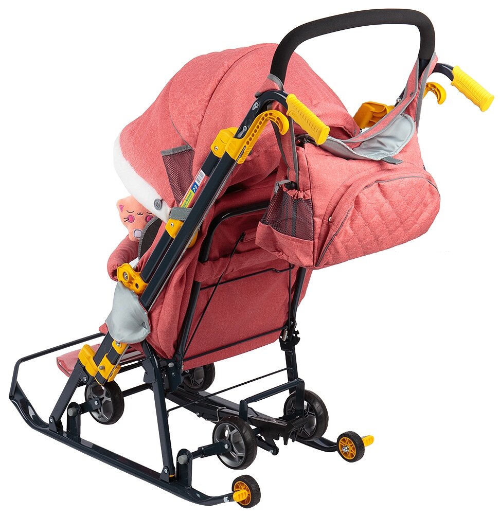 Санки-коляска Nika Ника детям 7-3 НД 7-3, в джинсовом стиле (красный) интересное: