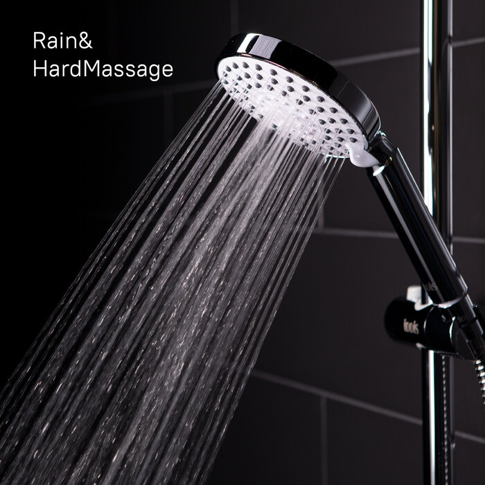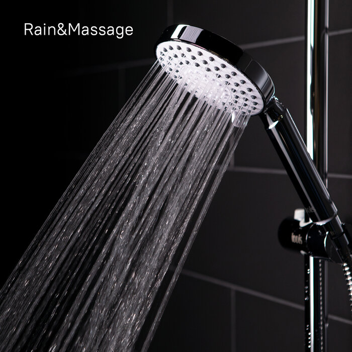 | Дополнительная информация | телескопическая стойка, шарнирное крепление верхнего душа; высота стойки для душа: 1223 мм; диаметр душевой лейки: 118 мм; диаметр верхнего душа: 250 мм |