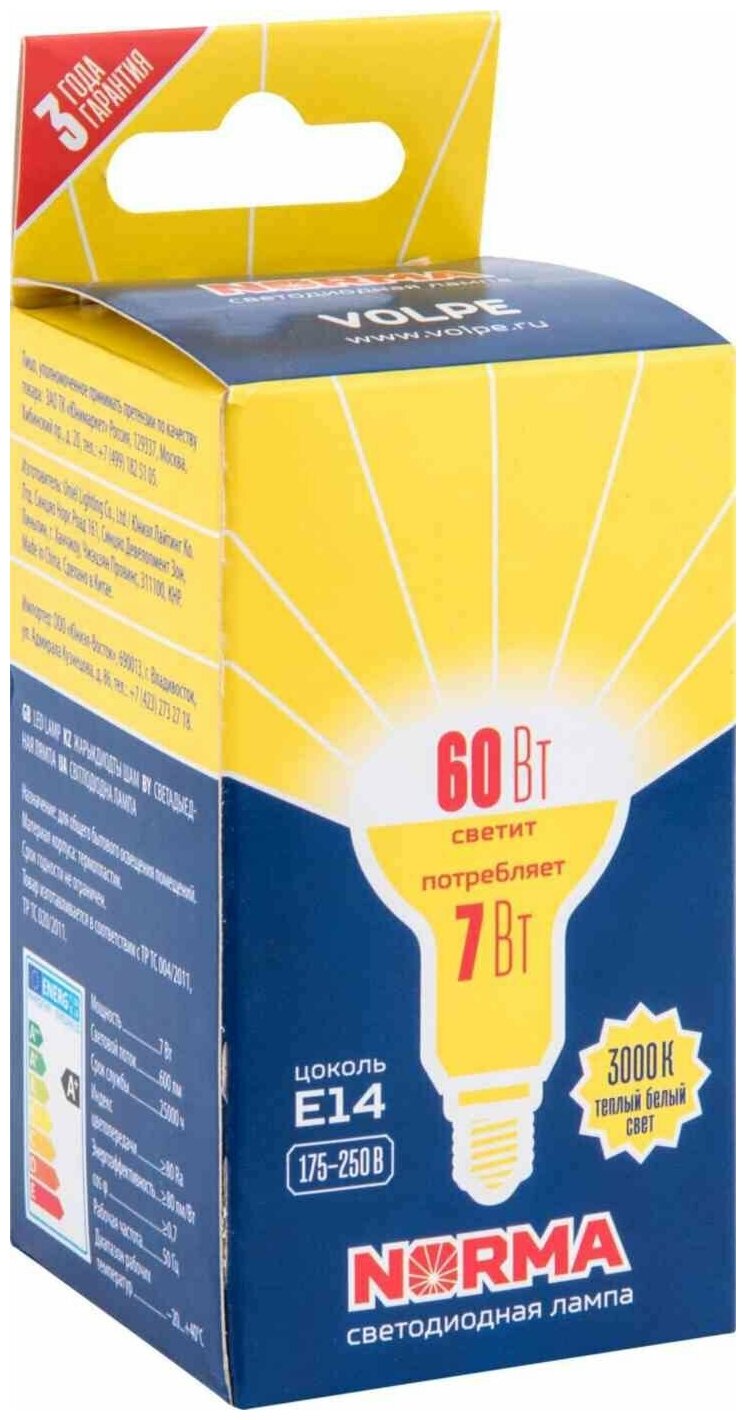 Купить Типы/Лампочки/Светодиодные Volpe Лампа светодиодная E14 7W 3000K матовая LED-R50-7W/WW/E14/FR/NR UL-00003845