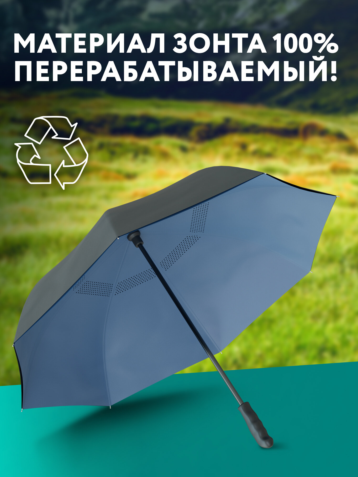 Купить Зонт-трость реверсивный PUREVACY. Умный семейный зонт обратного сложения антиветер с большим куполом, наоборот автомат двухсторонний женский, мужской