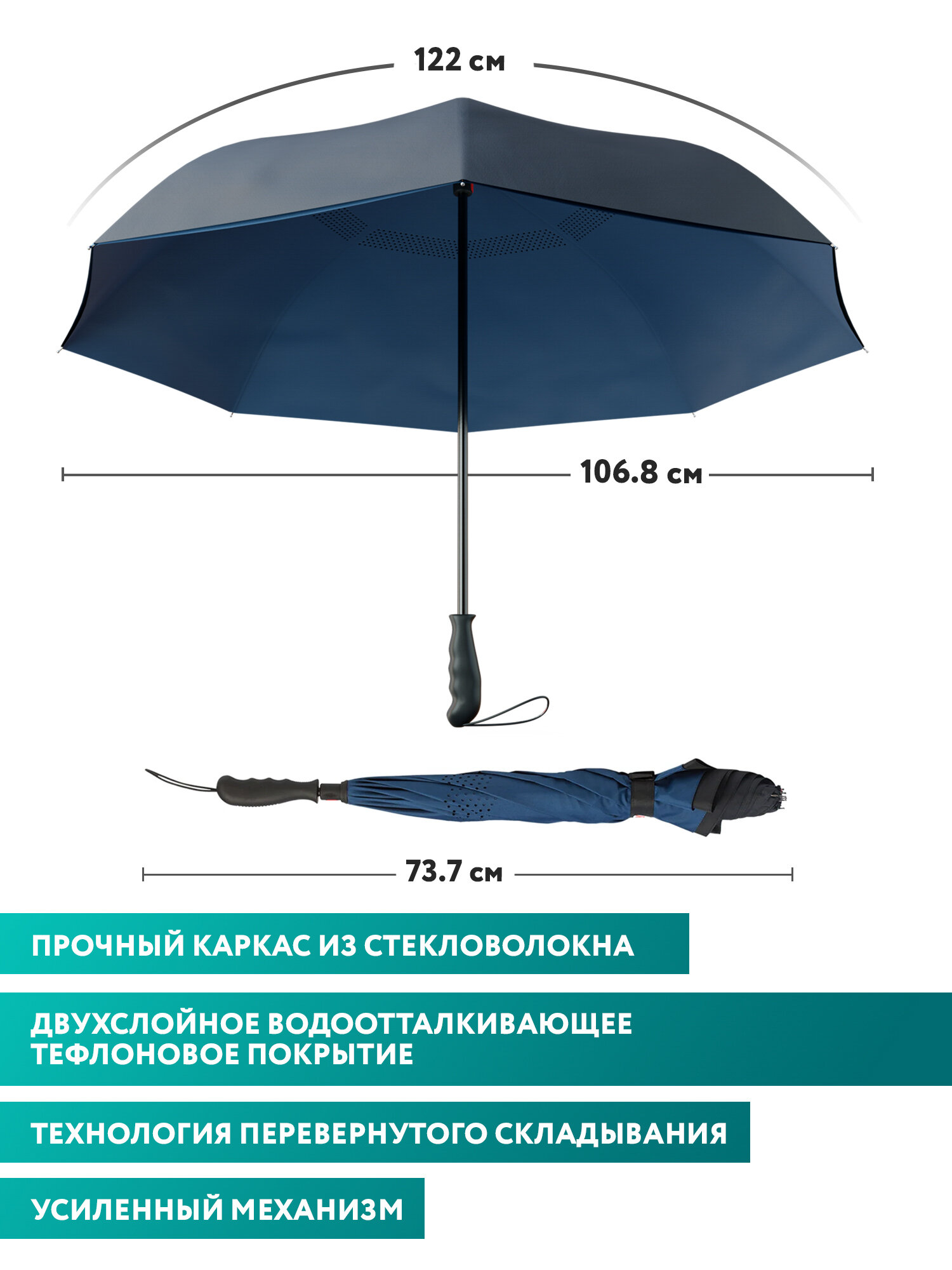 Умный зонт-трость реверсивный Purevacy. Семейный зонт обратного сложения антиветер с большим куполом, наоборот автомат двухсторонний женский, мужской