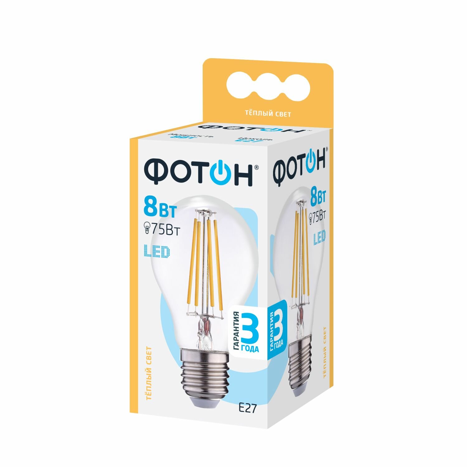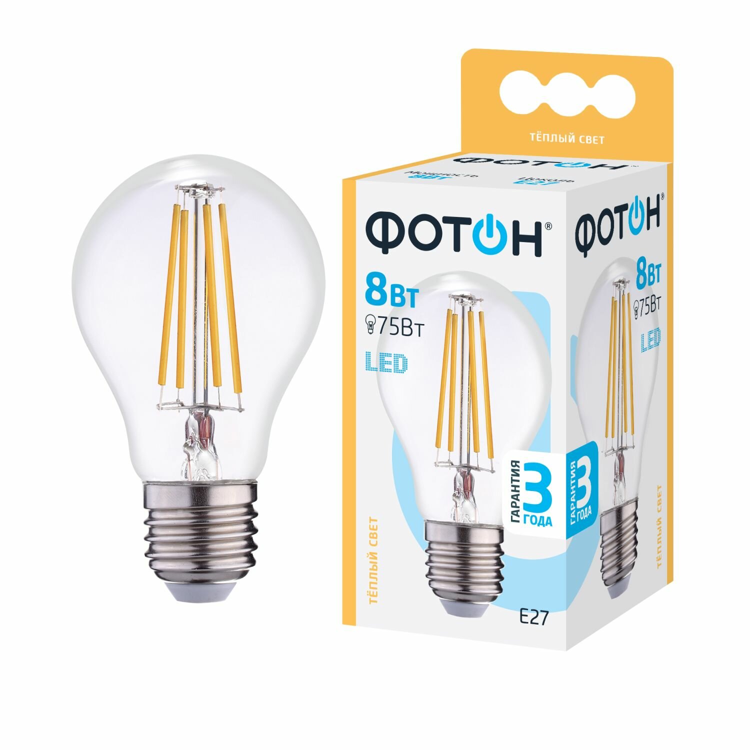 Фотон Лампа светодиодная LED FL A60 8W E27 3000K 23043 интересное: