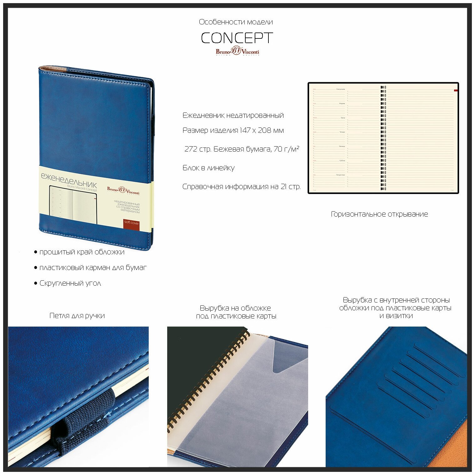Еженедельник BrunoVisconti недатированный, А5 (148 х 208 мм), "CONCEPT" оранжевый 128 стр., Арт. 3-322/188 интересное: