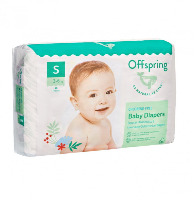 Эко-подгузники Offspring, размер S 3-6 кг. 48 шт. Листочки