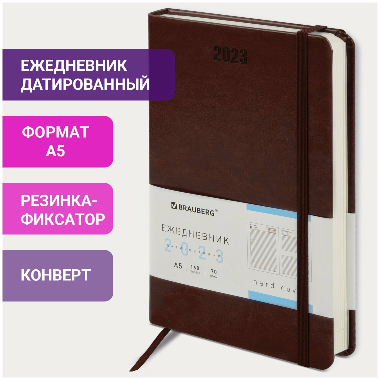 114144, Ежедневник датированный 2023 А5 138x213 мм BRAUBERG "Metropolis Special", под кожу, коричневый, 114144