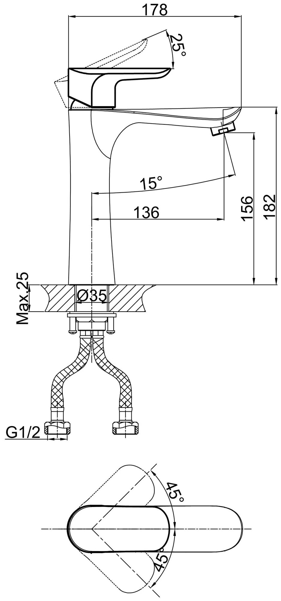 | Длина излива | 136 мм |