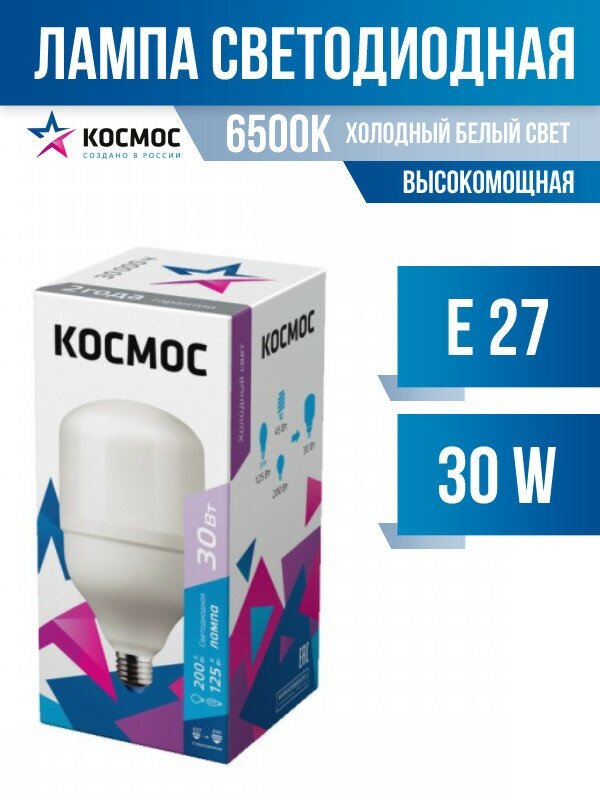 Лампа светодиодная КОСМОС 6500K, E27, HW, 30 Вт, 6500 К