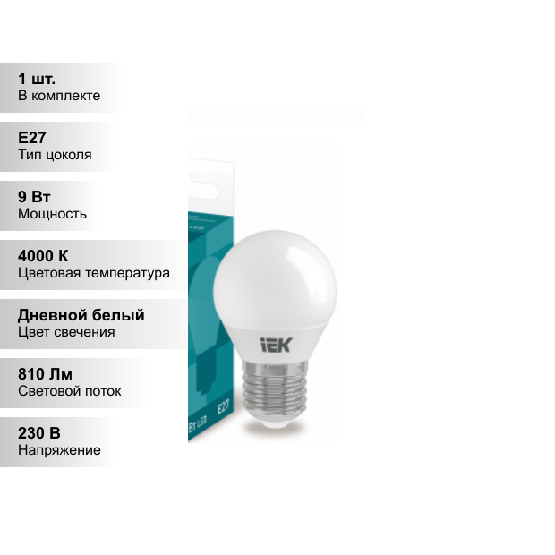 (14 шт.) Светодиодная лампочка IEK G45 9Вт 230В 4000К E27