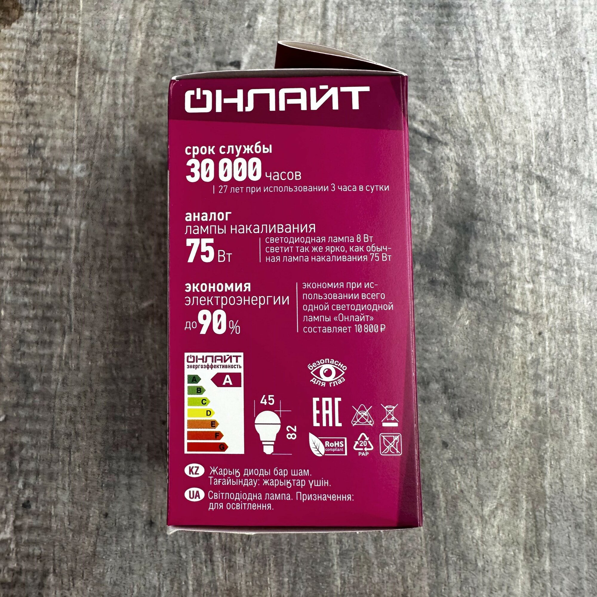 Эл.лампа Онлайт LED G45 8Вт E27 4000K 71627