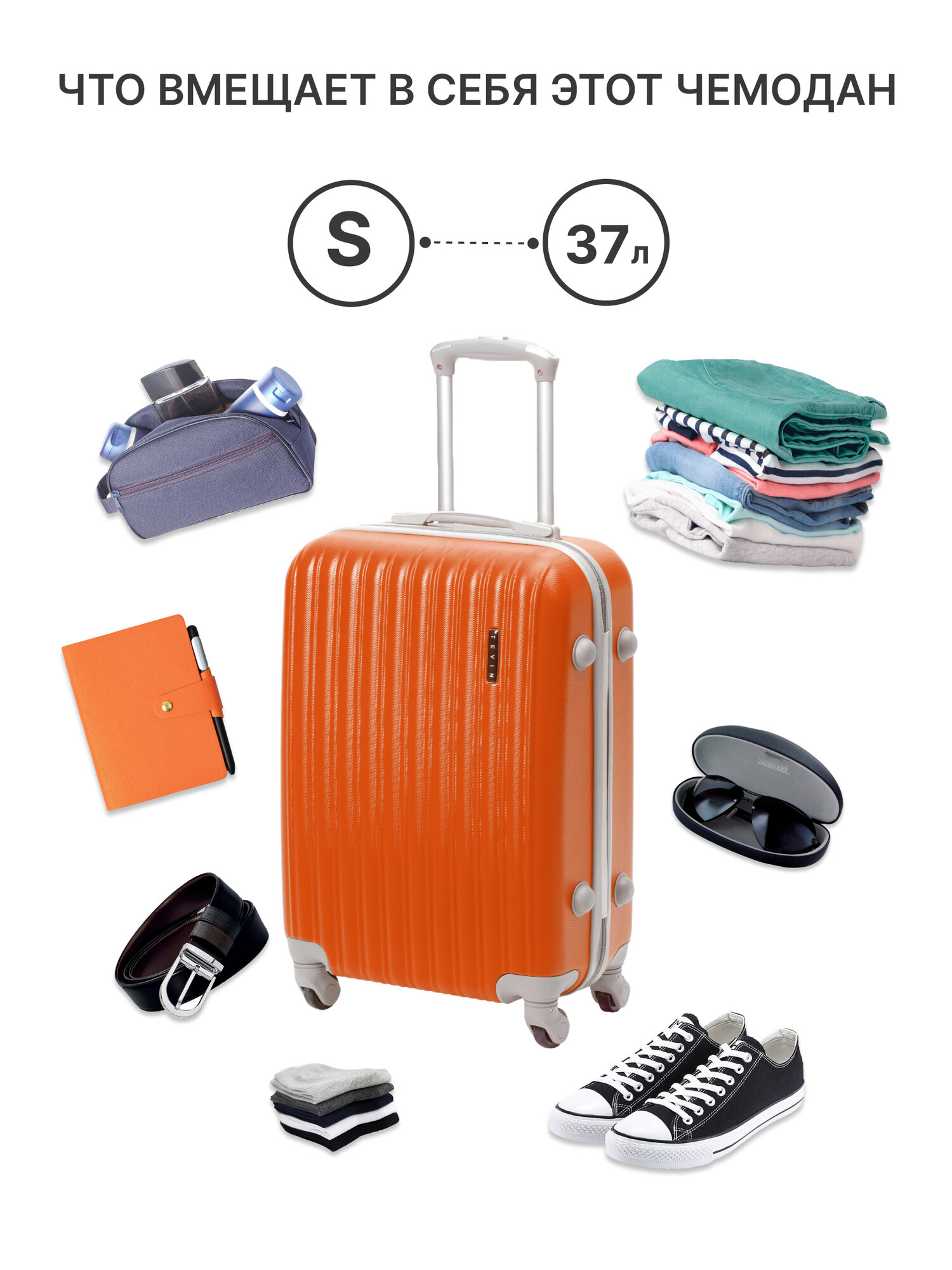 Чемодан TEVIN, 37 л, размер S, оранжевый