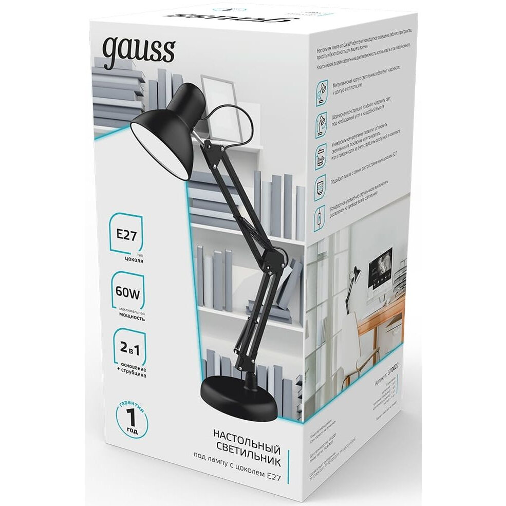 СохранитьНастольная лампа GAUSS GTL002 60W 220-240V E27 черный струбцина и основание 1/12 интересное: