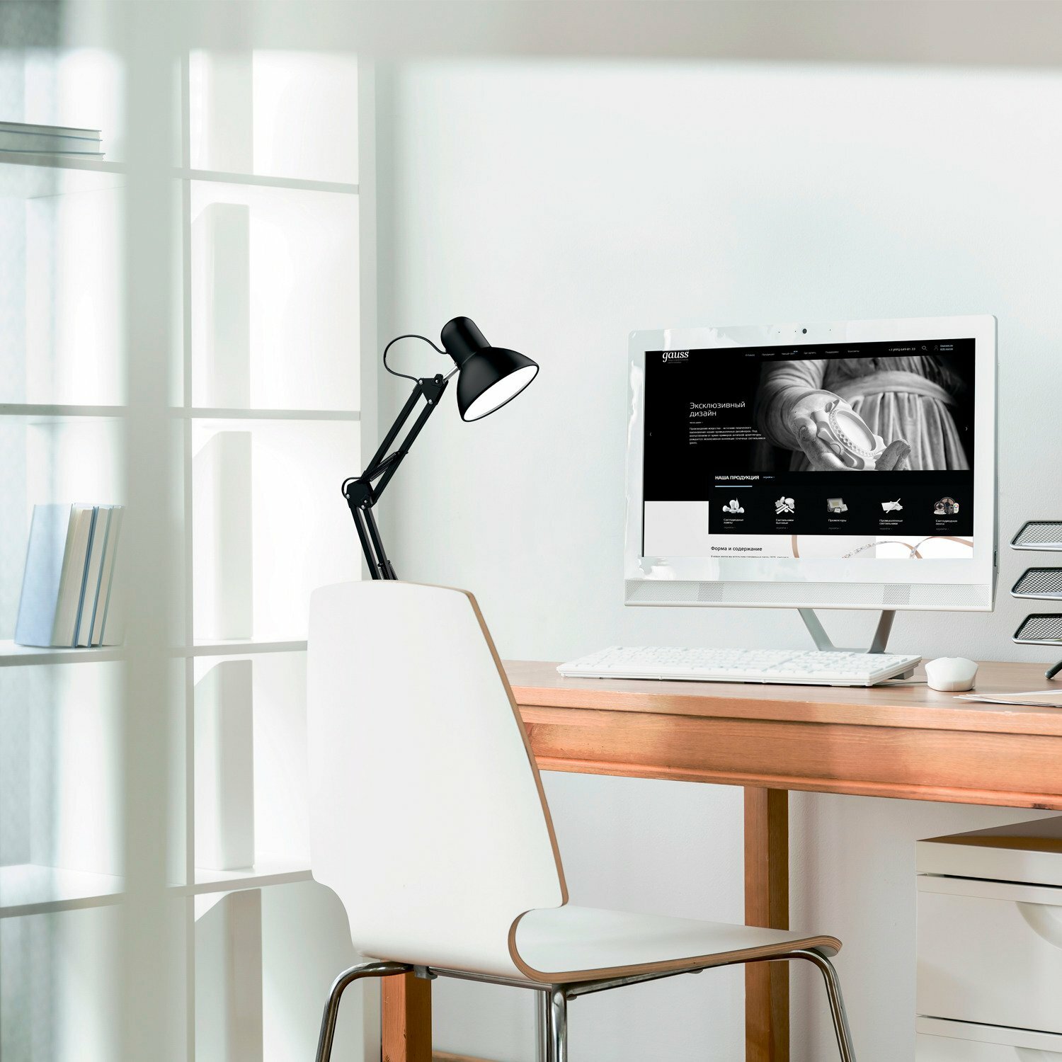 Светильник настольный Gauss GTL002 60W 220-240V E27 белый струбцина и основание