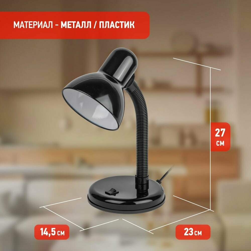 Лампа офисная ЭРА N-120-E27-40W-BK, E27, 40 Вт, черный