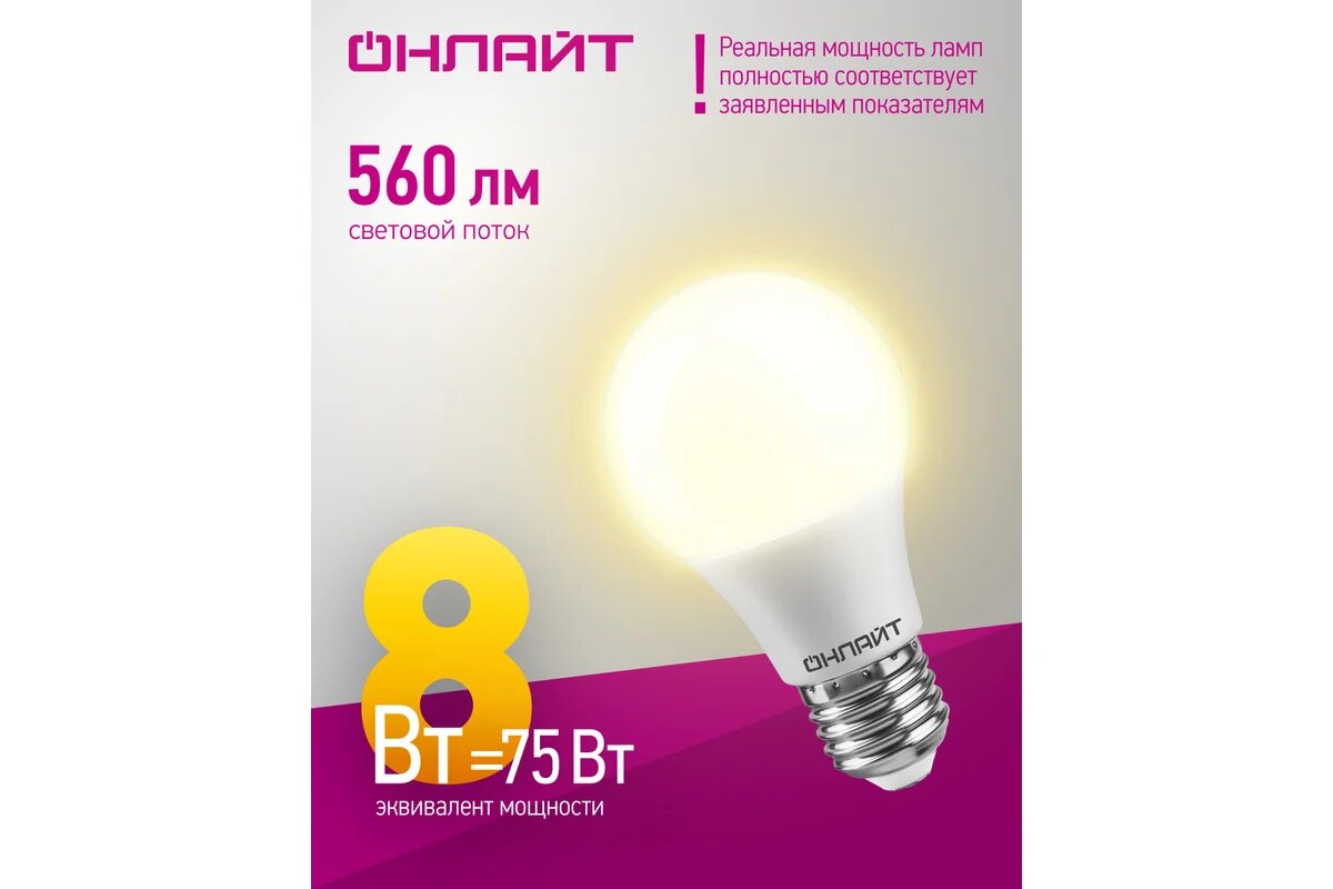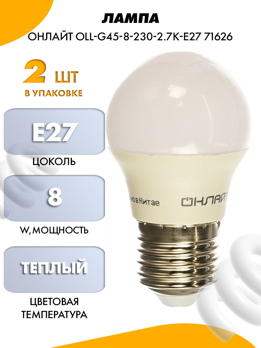 Лампа светодиодная онлайт 71626, E27, G45, 8 Вт, 2700 К