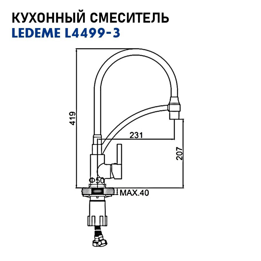 Купить Смеситель для кухни Ledeme L4499-3