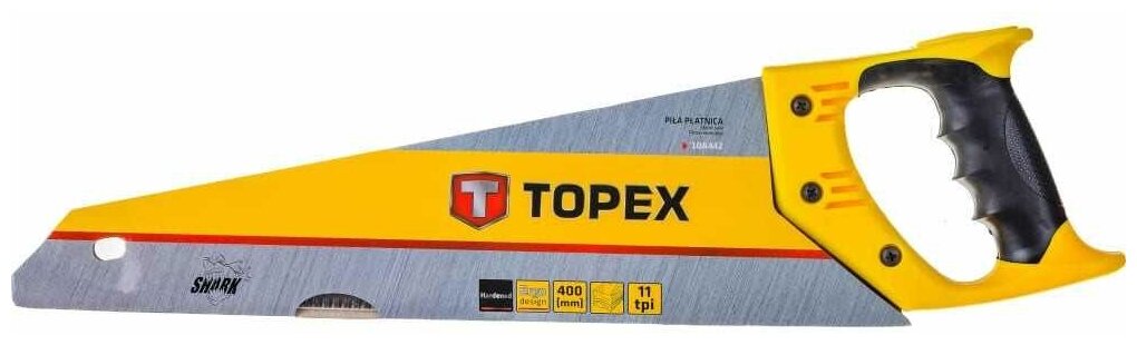 Купить Topex Ножовка Shark, 11 Tpi, трехсторонняя заточка, закаленные зубья, двухкомпонентная ручка. 10A442
