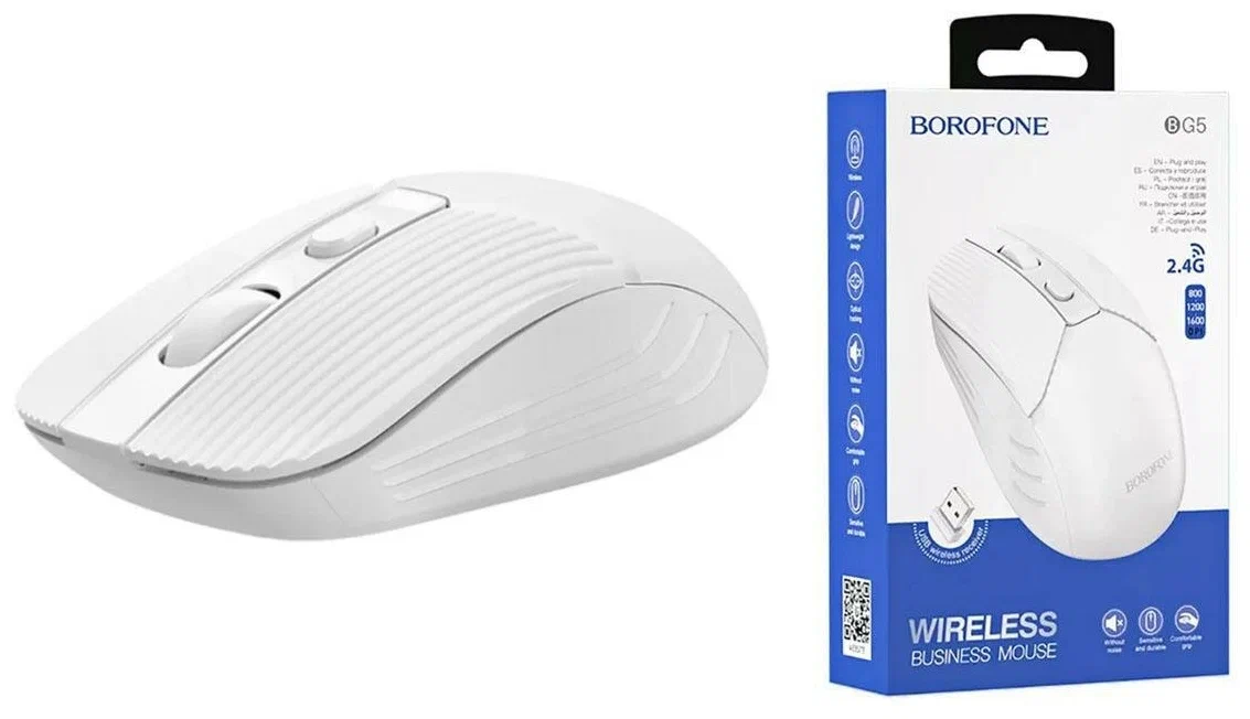 Мышь Borofone BG5, беспроводная, оптическая, 1600 dpi, от одной батарейки ААА, белая