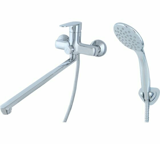 СохранитьСмарт-Бриз смеситель для ванны / душа / универсальный, длинный излив 33 см, керамический дивертор (переключатель потока), с аксессуарами (лейка + держатель + шланг), цвет хром интересное: