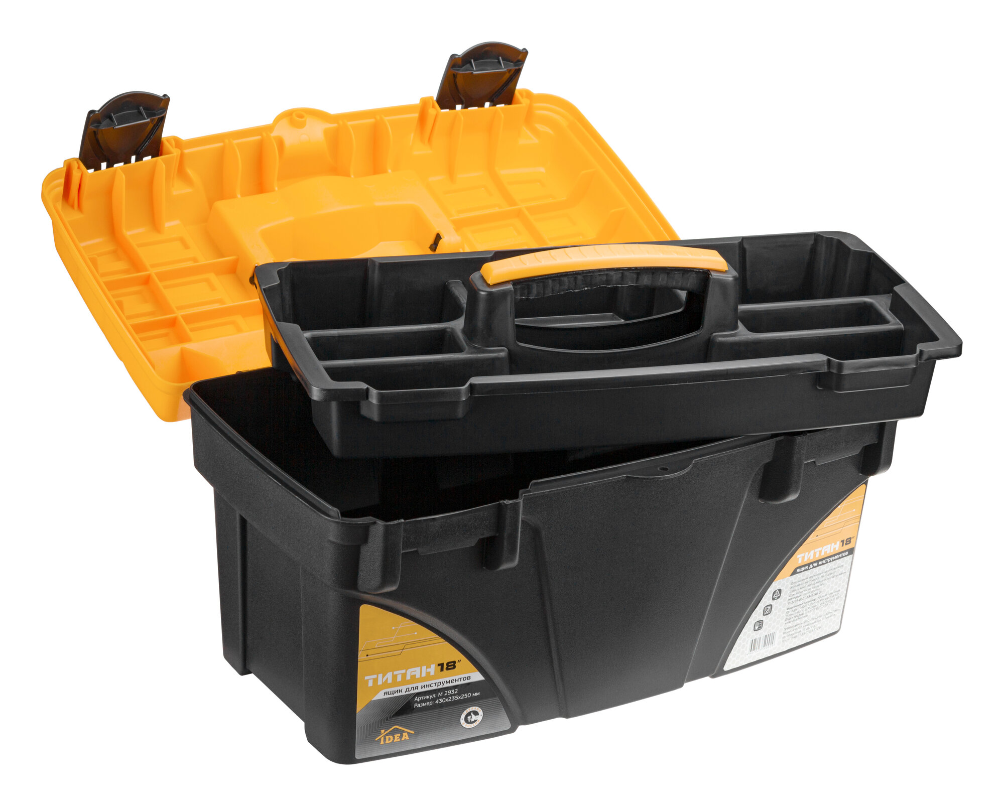 Купить Ящик для инструментов, 18 '', 43х23.5х25 см, пластик, Idea, Титан, пластиковый замок, без секций, М 2932