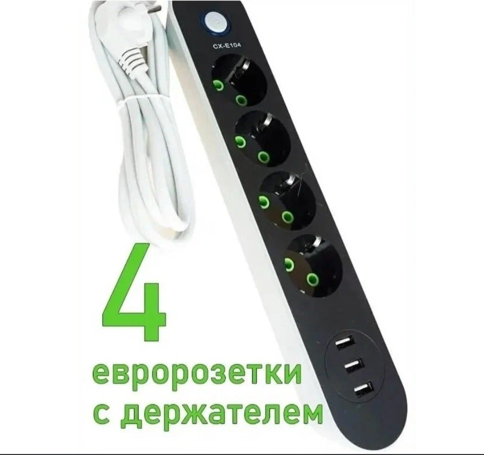 Сетевой фильтр, 4 евро-розетки, 3 USB с синей подсветкой, 2 метра Сетевой удлинитель интересное: