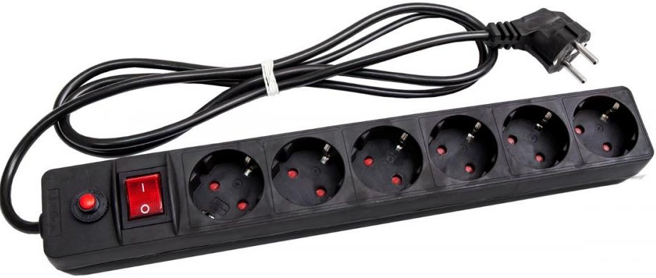 Universal Сетевой фильтр UNIVersal ПВС 3*0,75 6гнезд 10м выключатель с индикацией, с/з, з/ш, черный