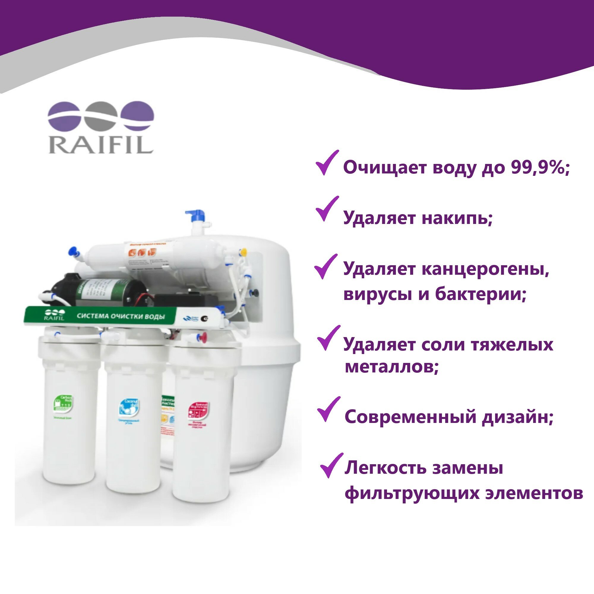Фильтр под мойкой RAIFIL RO808-550BP-EZ интересное: