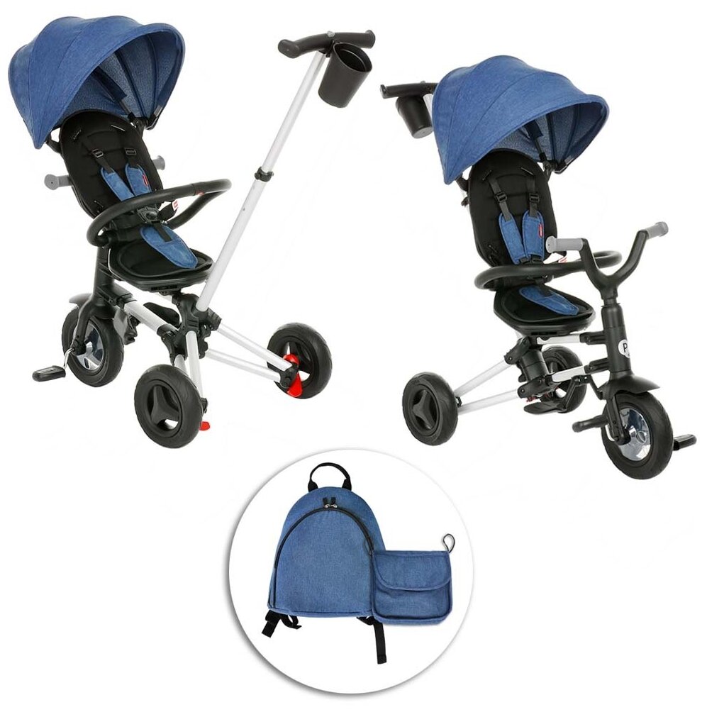 Велосипед детский трехколесный с ручкой и рюкзачком QPlay NOVA PLUS Blue