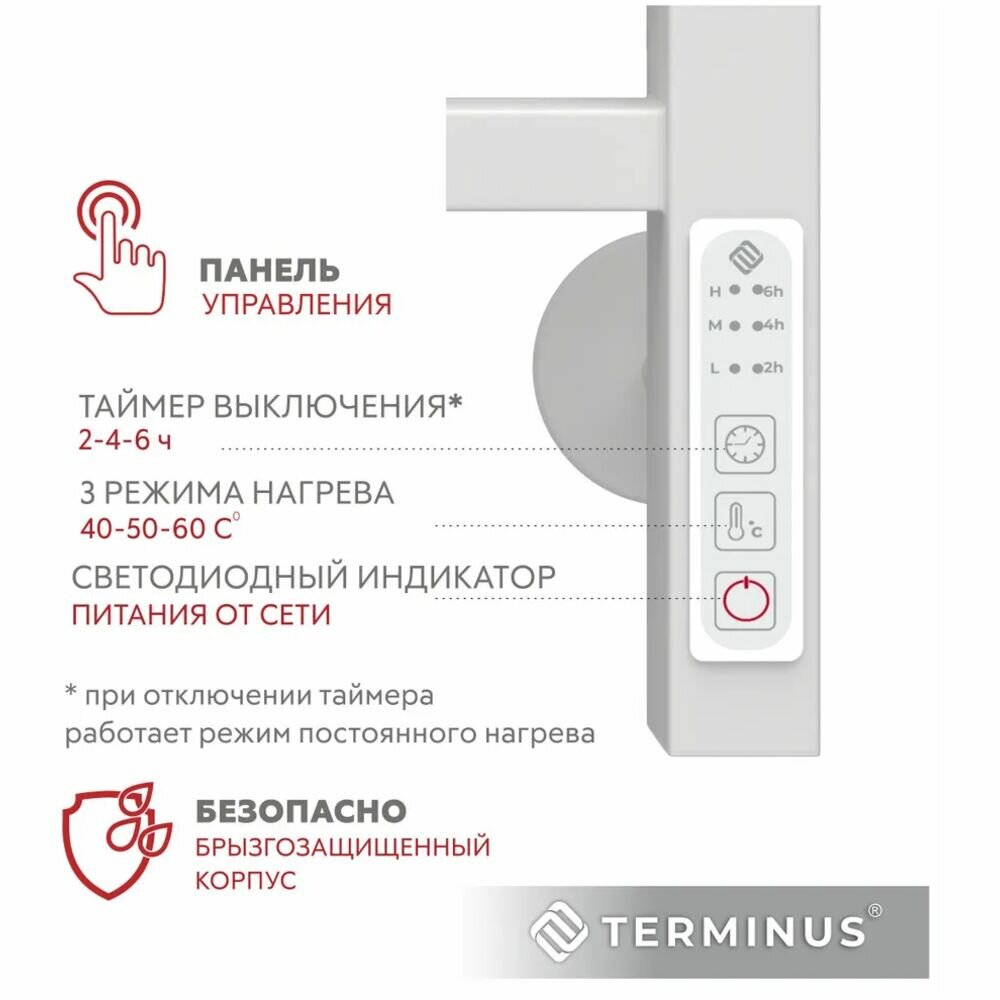Полотенцесушитель электрический TERMINUS (Терминус) Ното П9 500х700 мм, сенсорный диммер Sensor Quick Touch, таймер выключения, гарантия 5 лет/ Электрический полотенцесушитель с терморегулятором и таймером