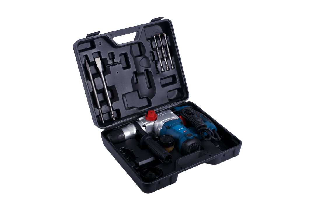 | Комплектация | дополнительная рукоятка, ограничитель глубины сверления, 3 бура, пика, зубило, запасные щетки, пыльник, кейс |