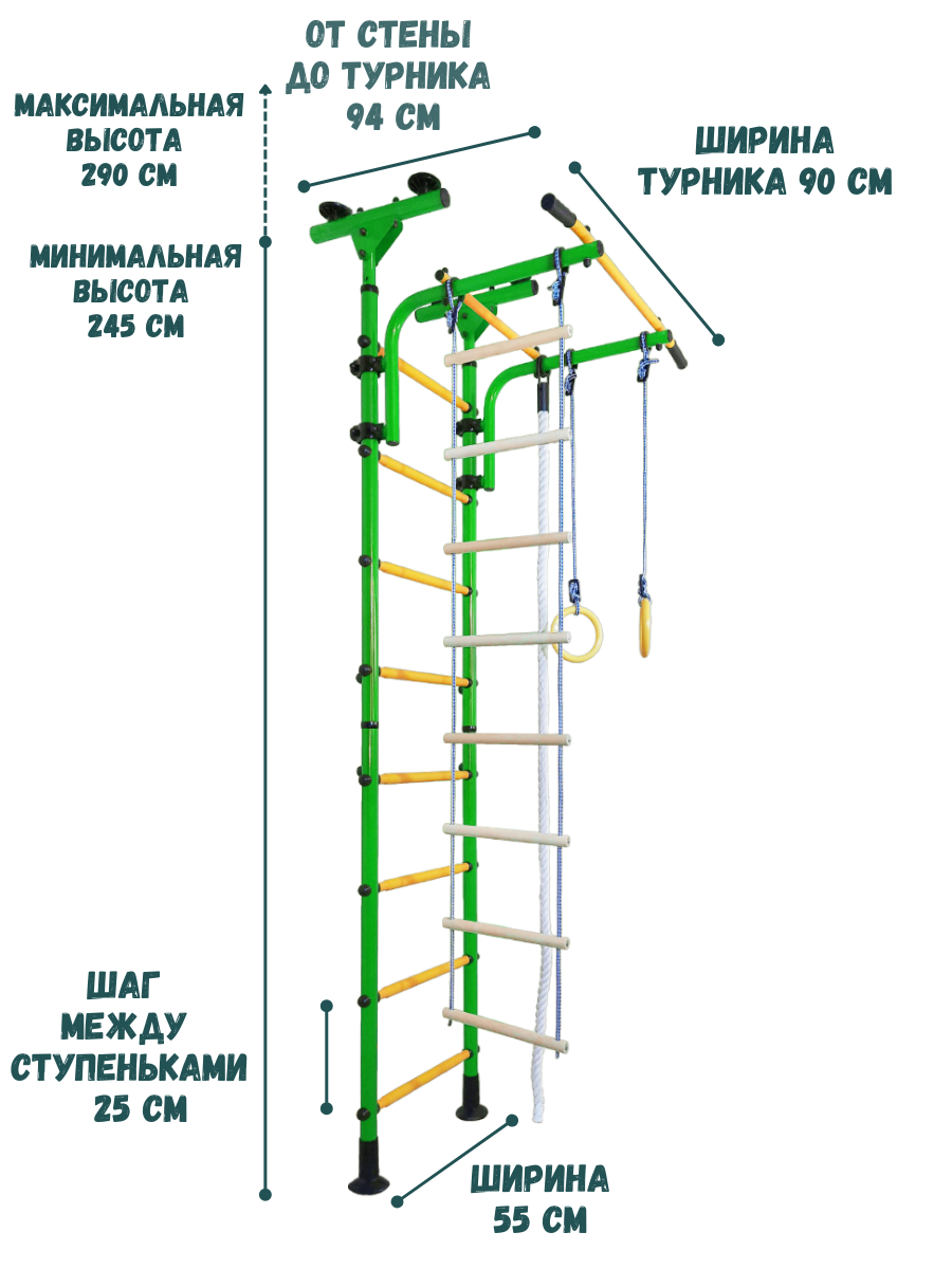 Купить Шведская стенка Юный Атлет Пол-потолок (зеленый/желтый)