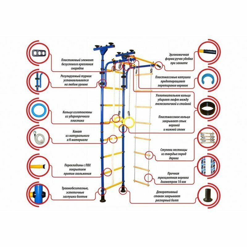 Шведская стенка Юный Атлет Пол-потолок (синий/желтый)