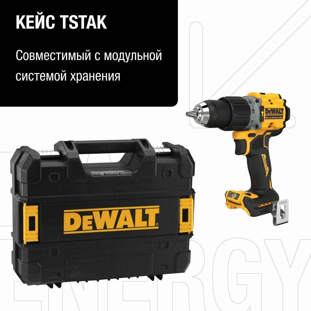 Аккумуляторная ударная бесщеточная дрель-шуруповерт DEWALT, 18 В, 2000 об/мин, 34000 уд/мин, без АКБ и ЗУ, в кейсе TSTAK, DCD805NT