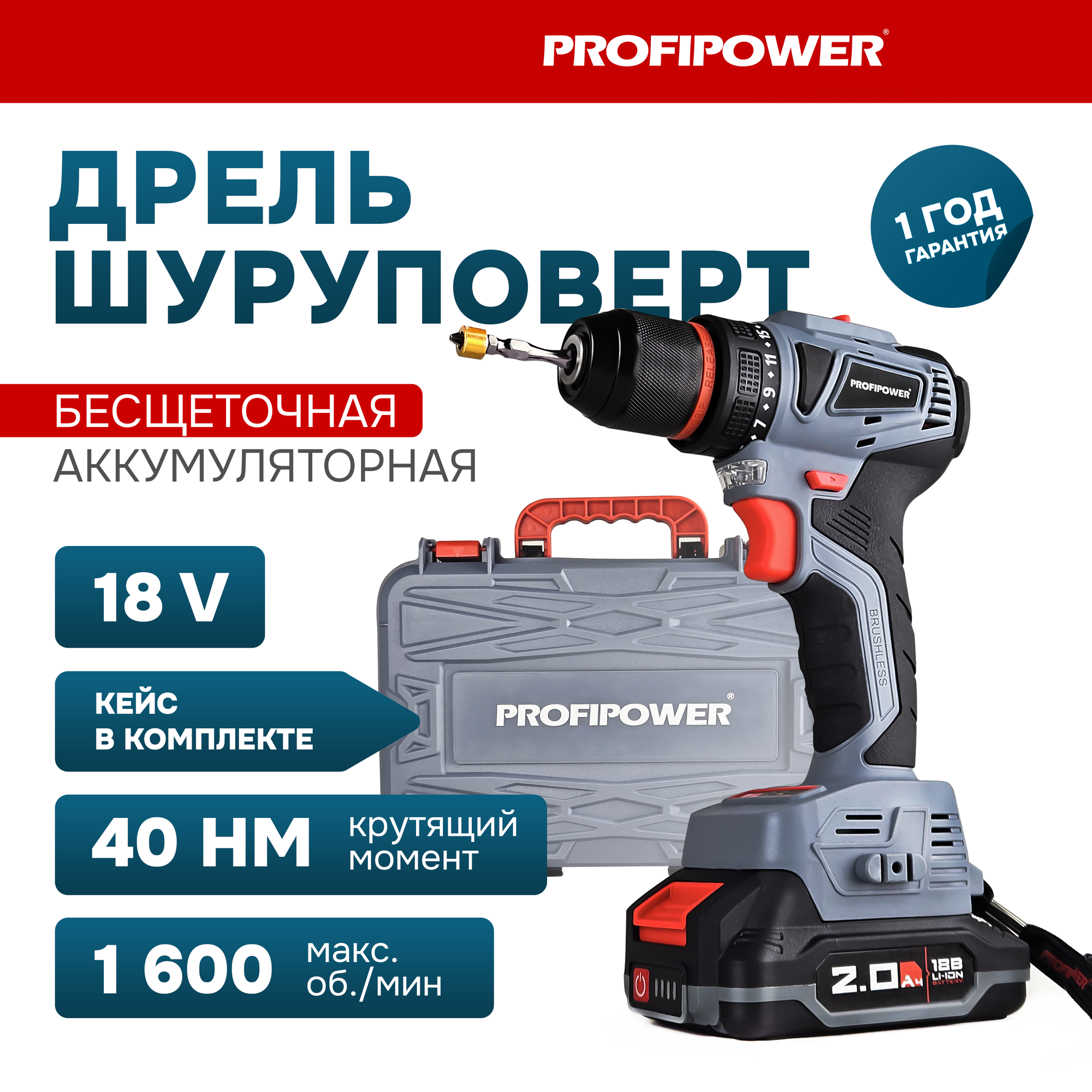Дрель-шуруповерт Profipower MKBL18В, От аккумулятора, 18 В, 40 Нм, 2 АКБ