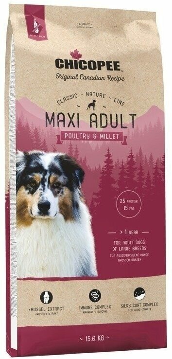 CHICOPEE CLASSIC NATURE LINE MAXI ADULT POULTRY & MILLET для взрослых собак крупных пород с птицей и просом (15 кг)