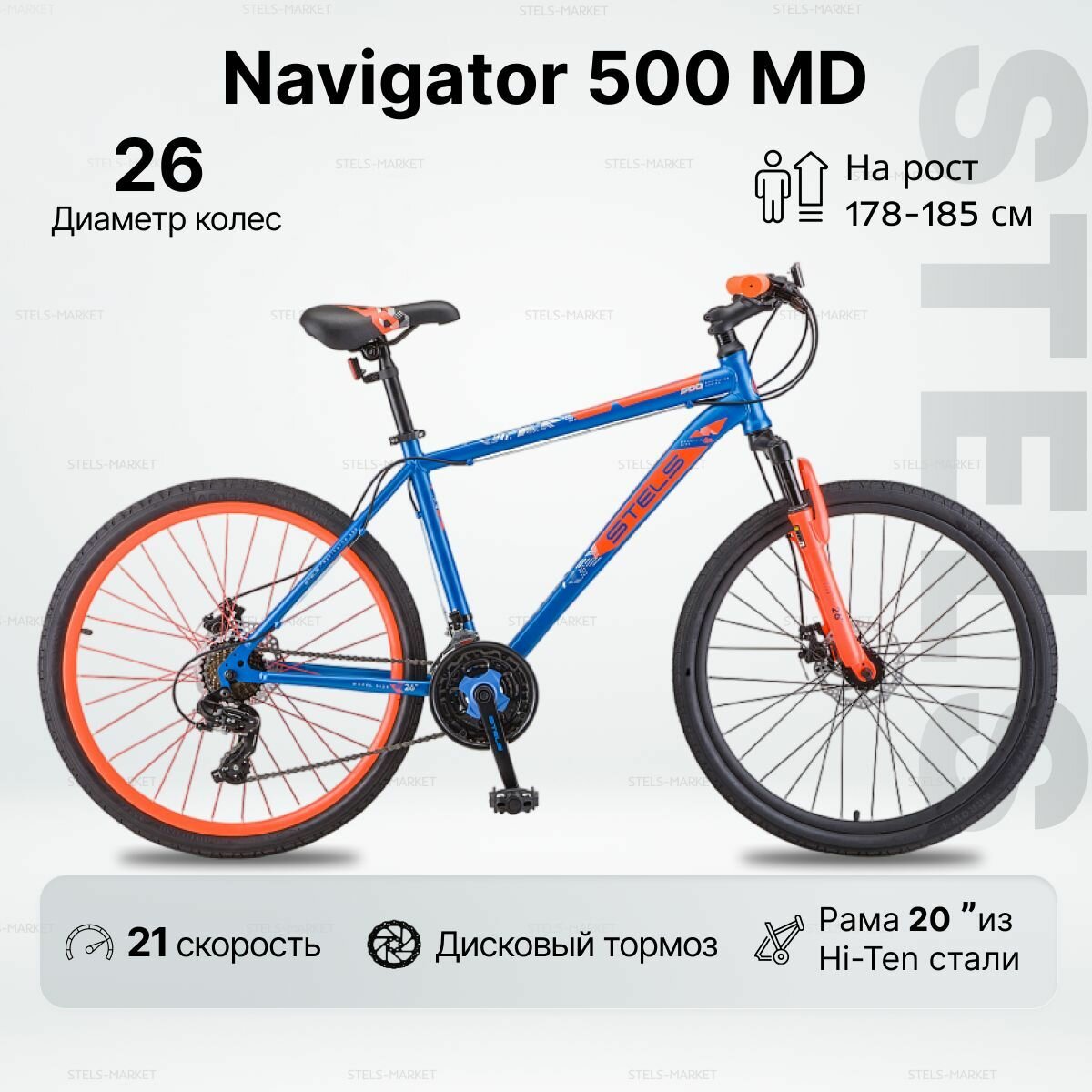 Велосипед горный STELS NAVIGATOR 500 MD 26" 20" Синий-красный интересное: