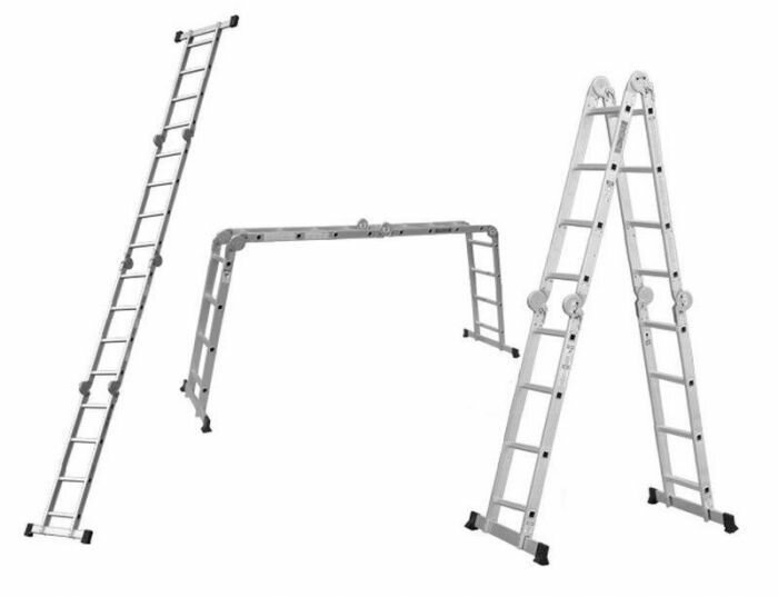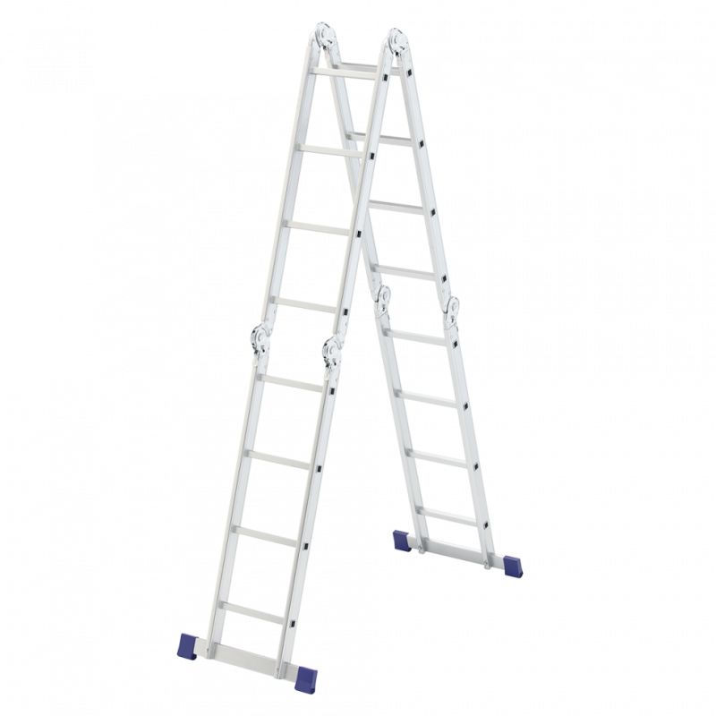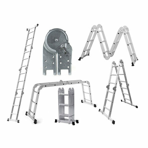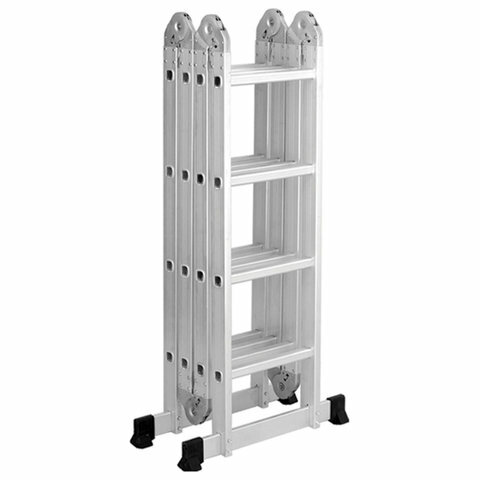 Лестница-трансформер алюминиевая 4х4 ступеней, высота 4,5 м (4 секции по 1,27 м), нагрузка 150 кг, вес 12,9 кг, 511444