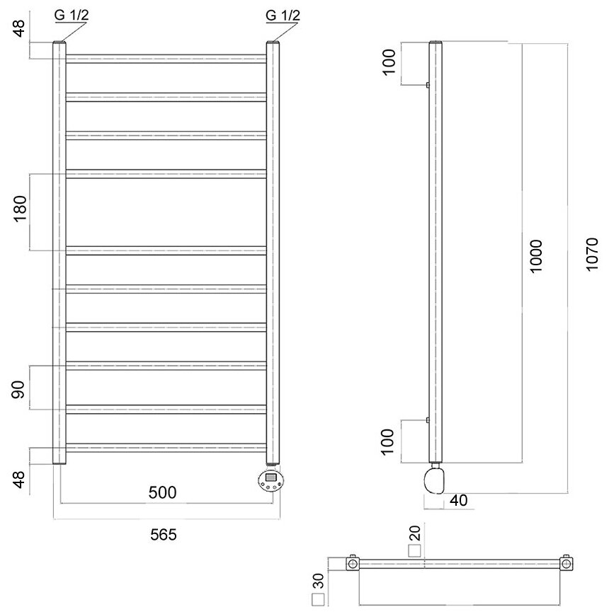 | Дополнительная информация | Полотенцесушитель, стойка крепления - 4 шт., кран Маевского 1 шт., заглушка -1 шт. Тэн с цифровым терморегулятором |