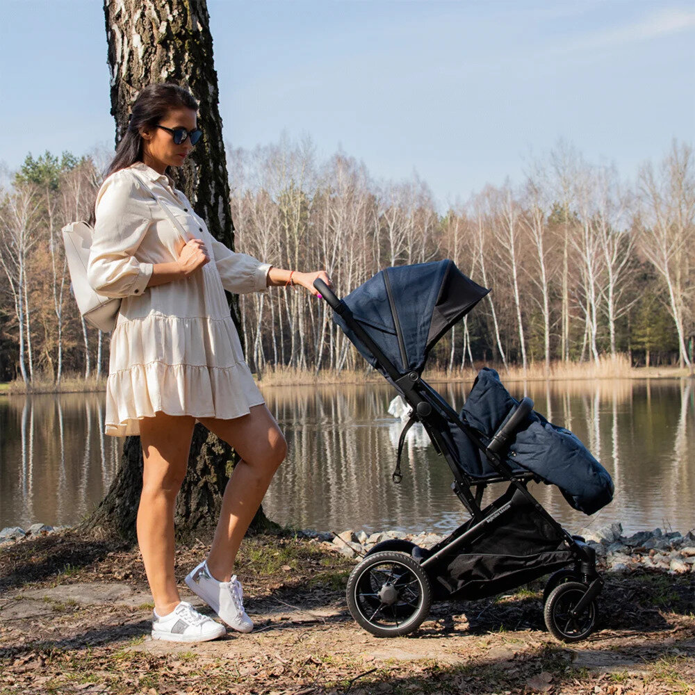 Конверт хорошо закрывает ножки и туловище малыша от ветра. Корзина достаточно вместительная + можно складывать вещи за голову малышу в сидячем режиме. |