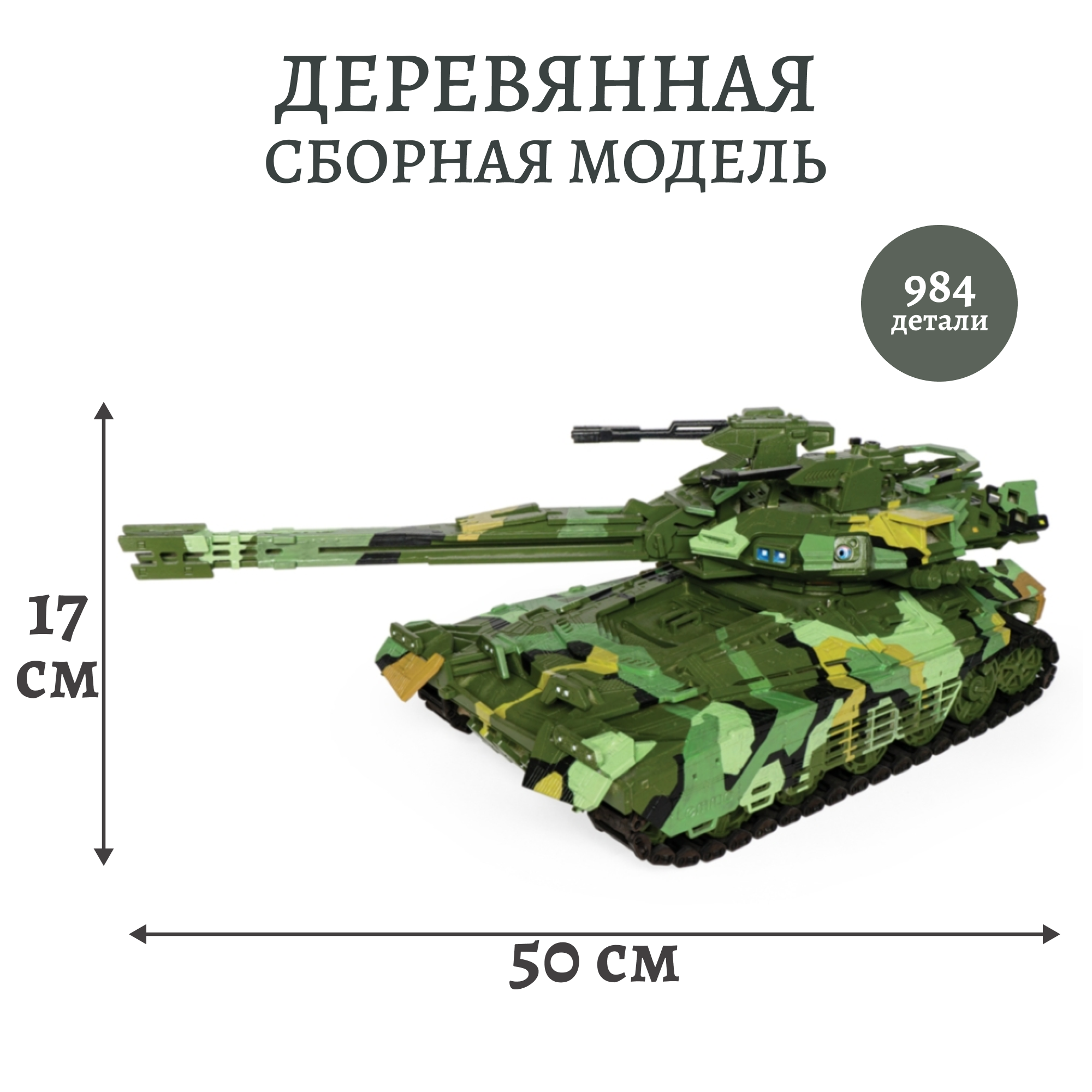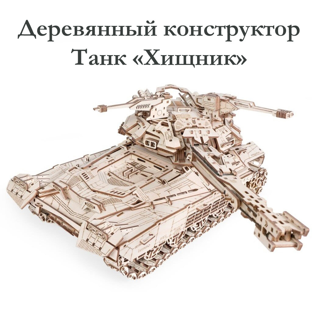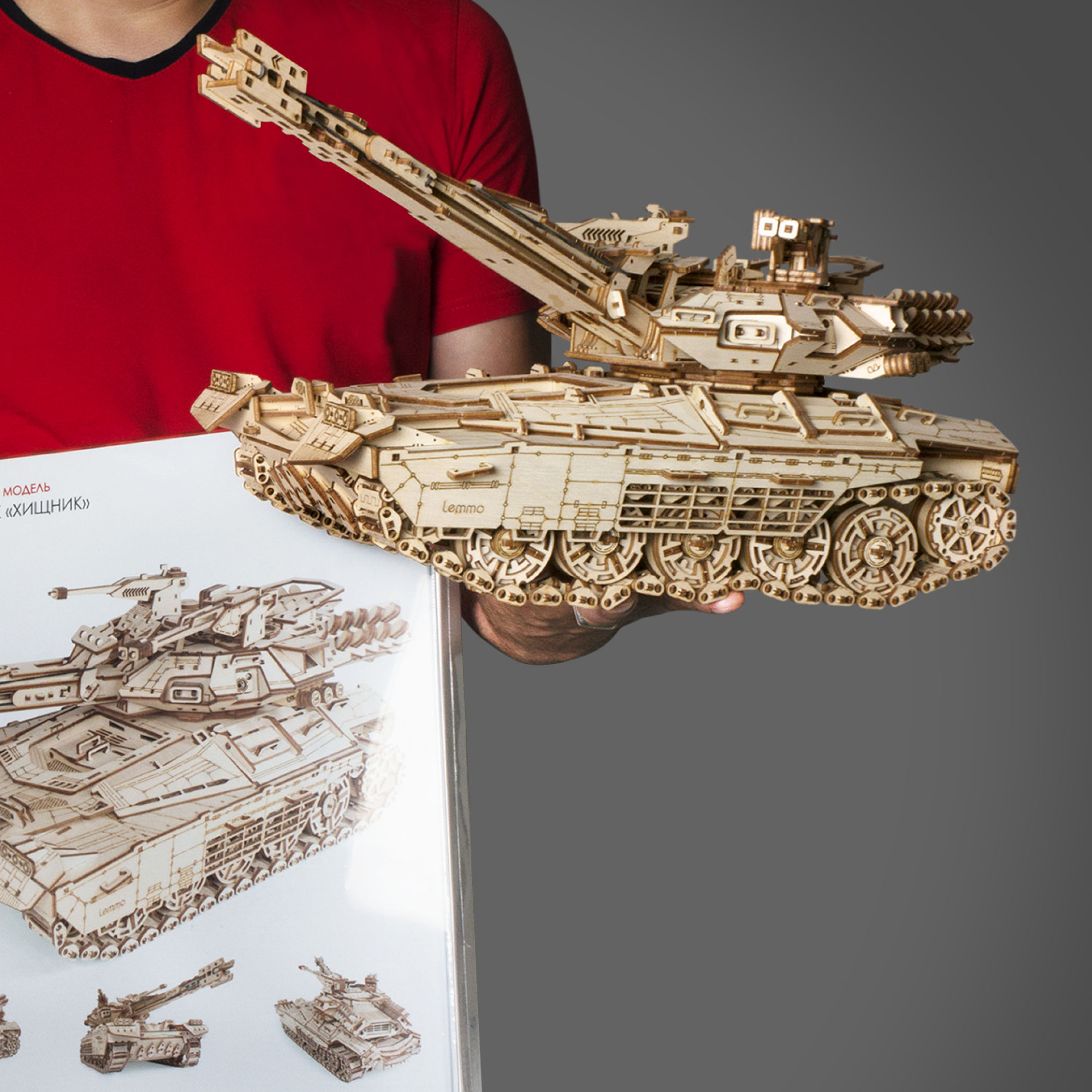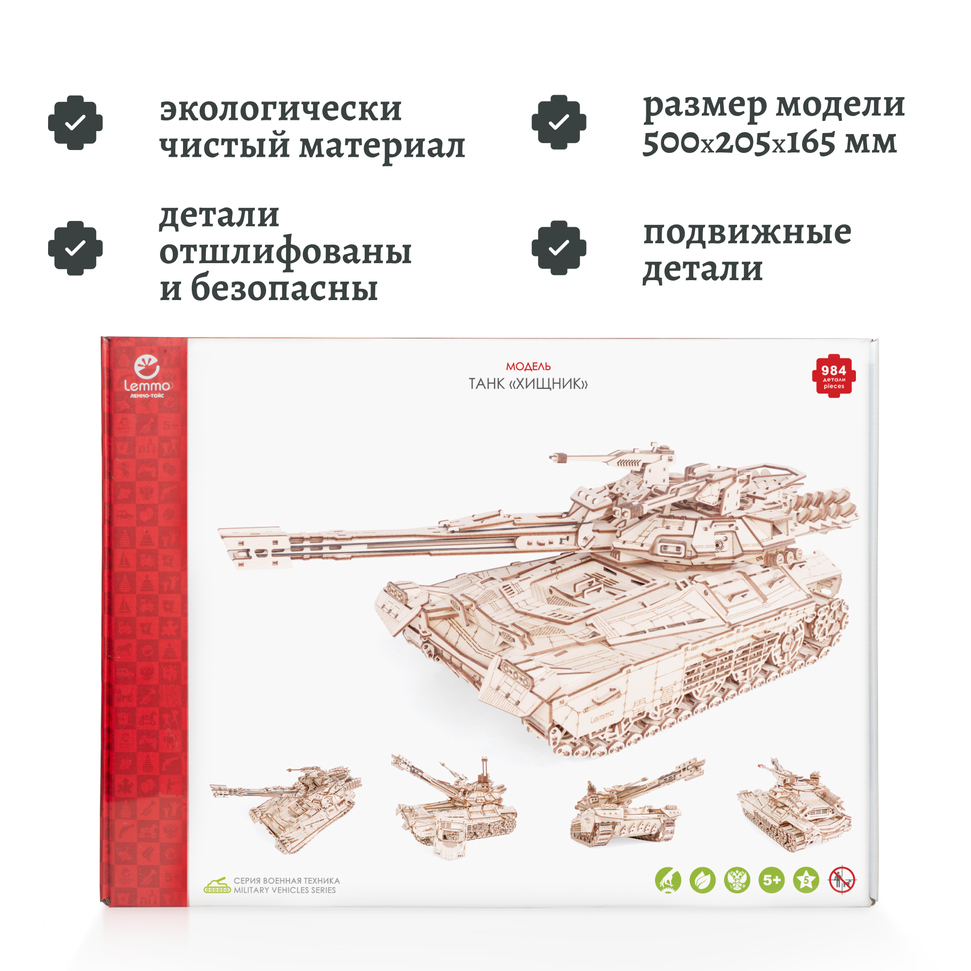 Деревянный конструктор, сборная модель танка Lemmo Хищник
