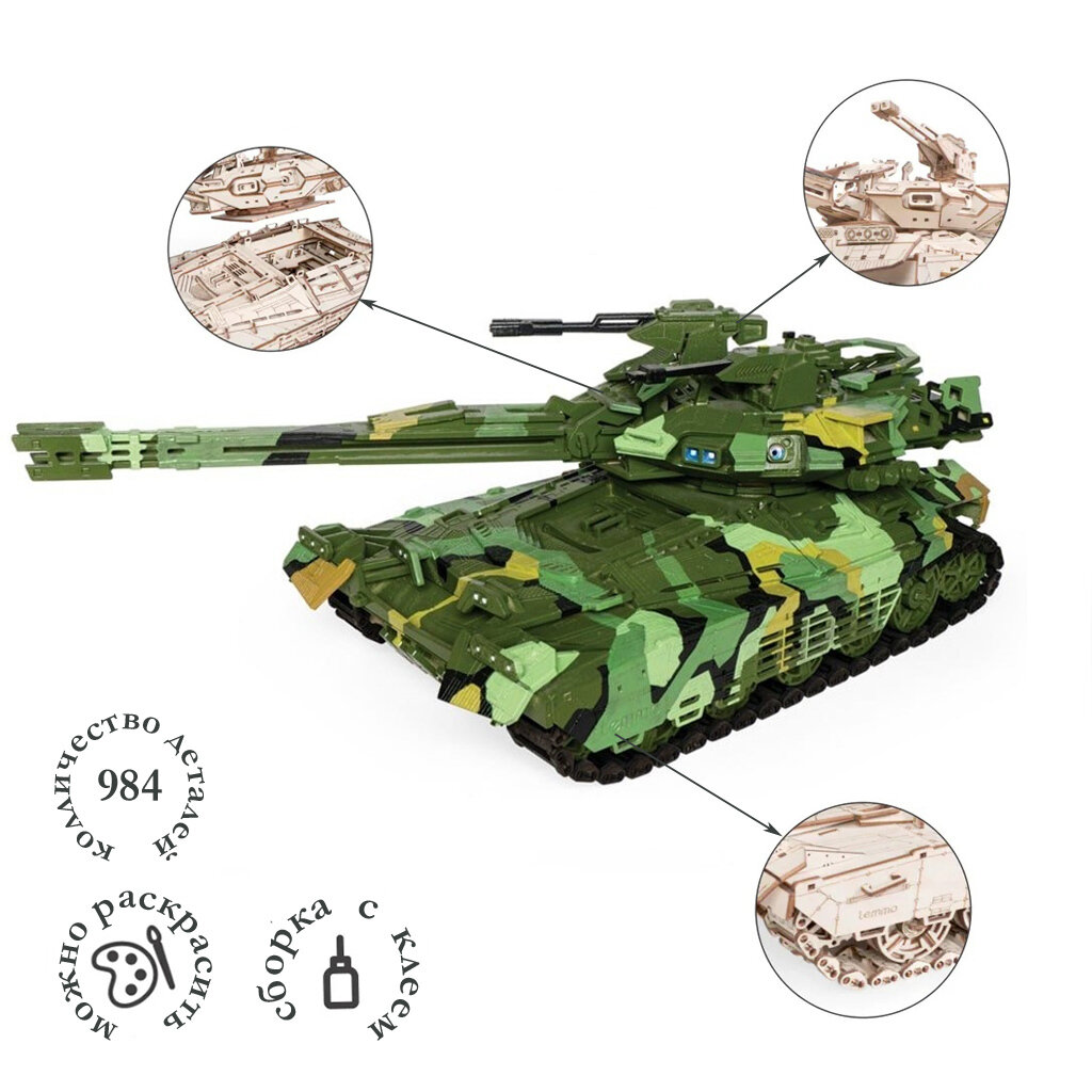 Купить Деревянный конструктор, сборная модель танка Lemmo Хищник / стреляет пулями, ездит