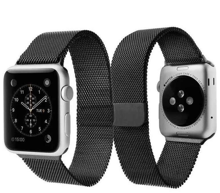 Ремешок для Apple Watch миланская петля размер 42-44-45 мм, черный / Браслет для часов Apple Watch series 1-7, SE