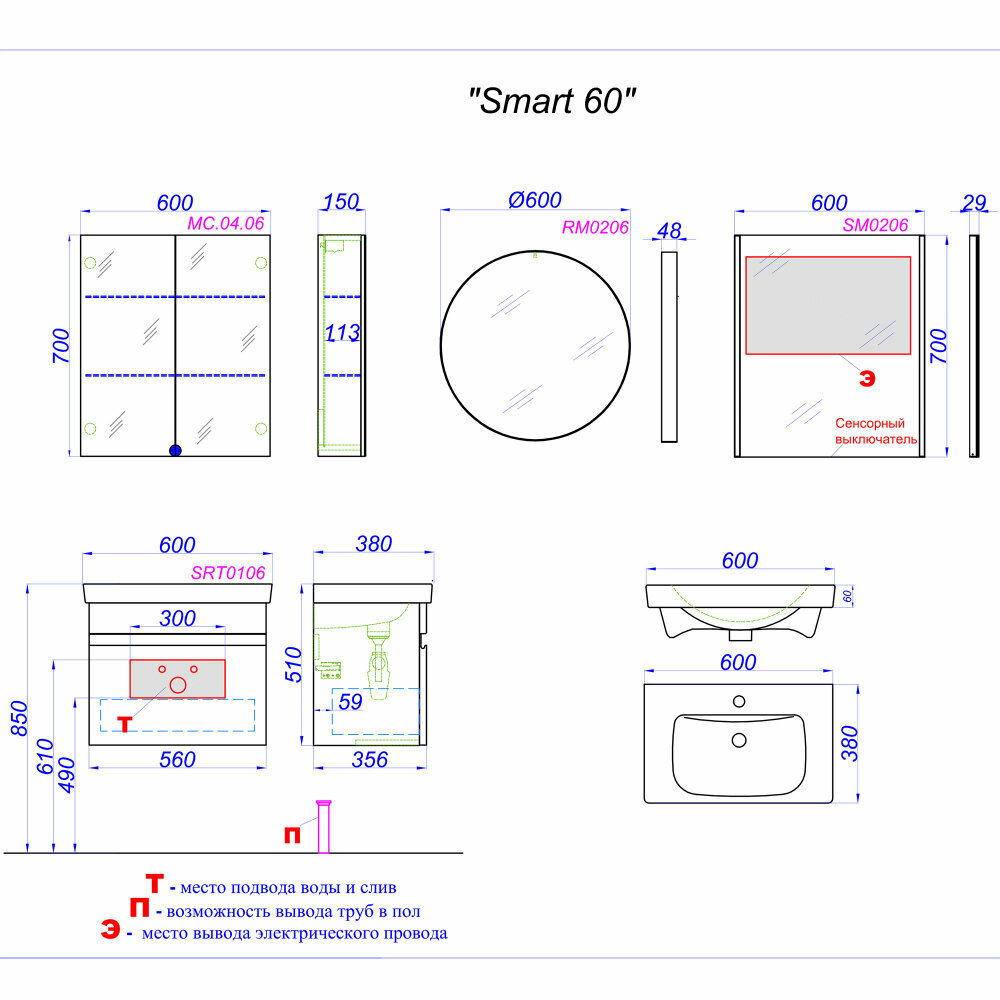 СохранитьТумба под умывальник подвесная , цвет бетон светлый Aqwella Smart SRT0106BS интересное: