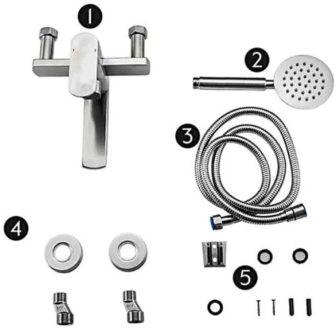 | Комплектация | Корпус с рычагом, картриджами, изливом и аэратором; шланг, лейка душевая, эксцентрики - 2 шт., декоративные чашки - 2 шт., паспорт, упаковка |