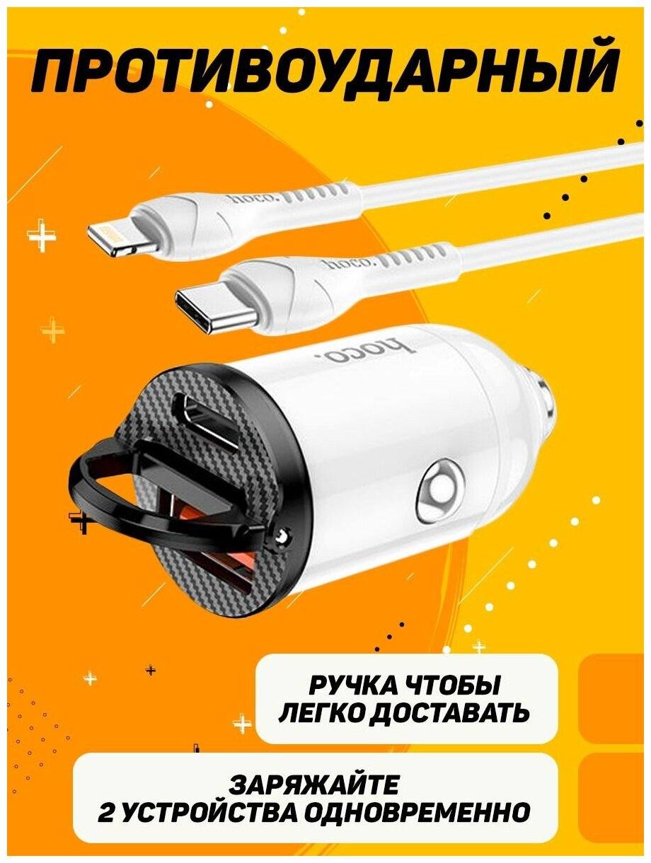 Автомобильное зарядное устройство (АЗУ) Hoco NZ2 QC 3.0 (USB+Type-C) + кабель Type-C-Lightning, 5 А, белый