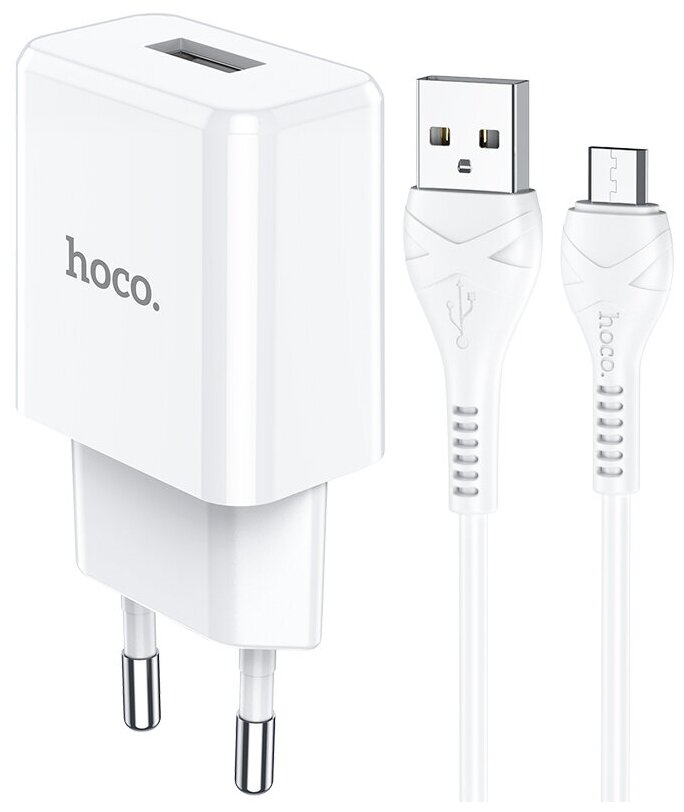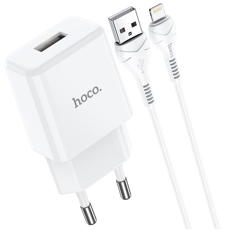 Блок питания сетевой 1 USB HOCO N9, Especial, 2.1A, с кабелем Lightning, 1.0м, поликарбонат, цвет: белый интересное:
