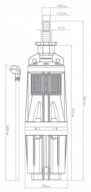 Насос колодезный ДЖИЛЕКС качан 20/60-16 - 0,24 кВт (Qmax 1,2м³/ч, Hmax 60м, кабель 16м)