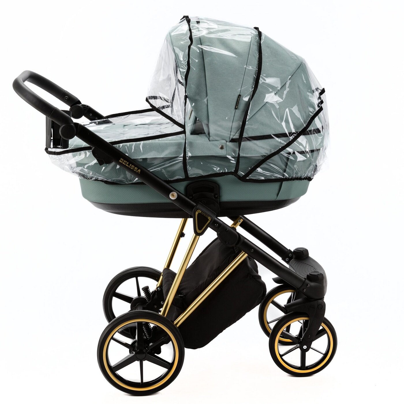 Купить Коляска универсальная Adamex Belissa Special Edition 2 в 1, PS-548 - серо-зеленая, серо-зеленая кожа, золотая рама