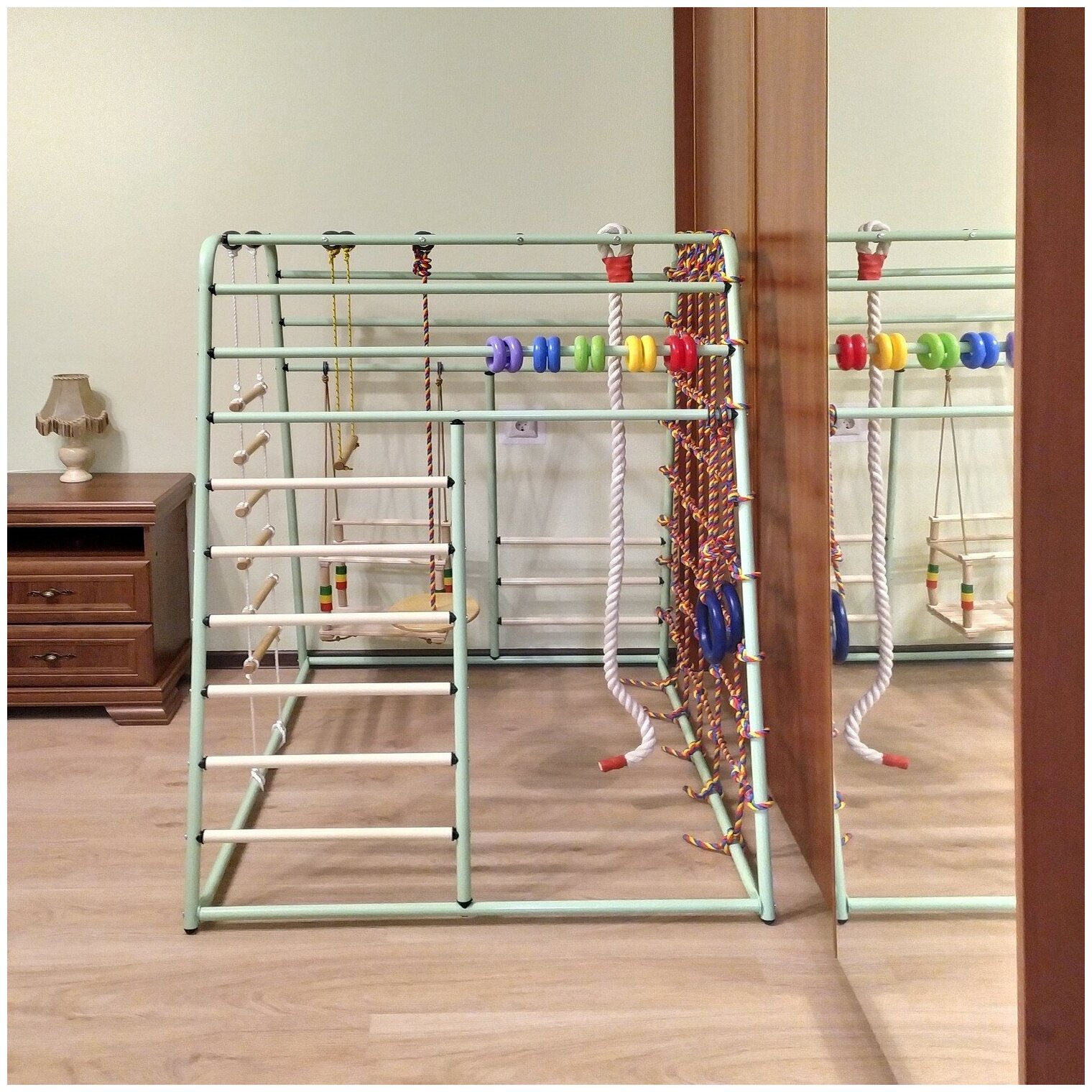 Детский спортивный комплекс Вертикаль "Весёлый Малыш NEXT" (металлические перекладины), фанерная горка, фисташковый